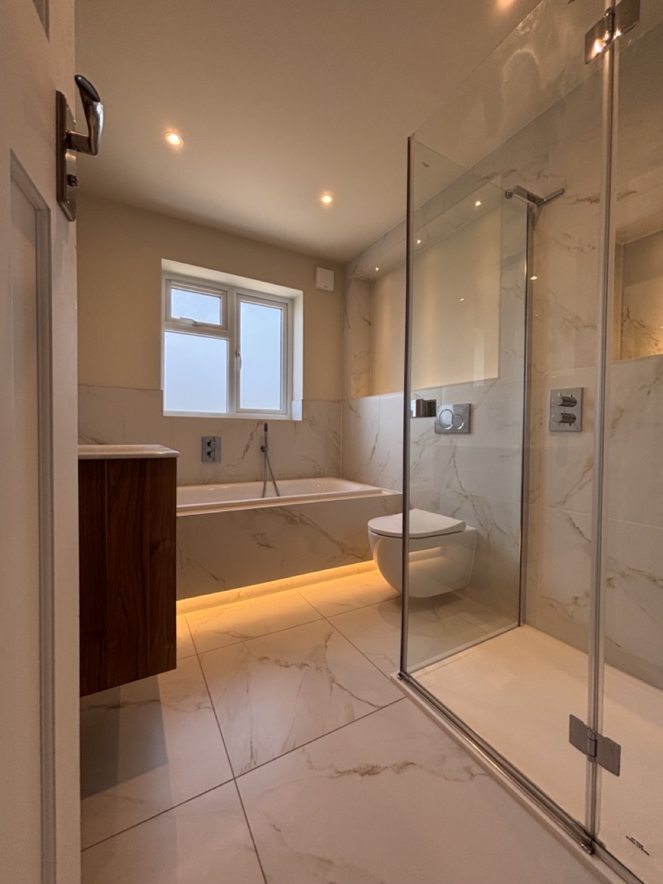 Upstairs, a stylish loft conversion added a generous master bedroom with a premium shower ensuite bathroom, ensuring plenty of light through both dormer windows and Velux windows. In addition, the first floor was upgraded with a glamorous new family bathroom. Situated in one of Twickenham’s most desirable residential areas, this project reflects the quality, detail, and craftsmanship Top Grade Build are trusted for across Surrey and West London.